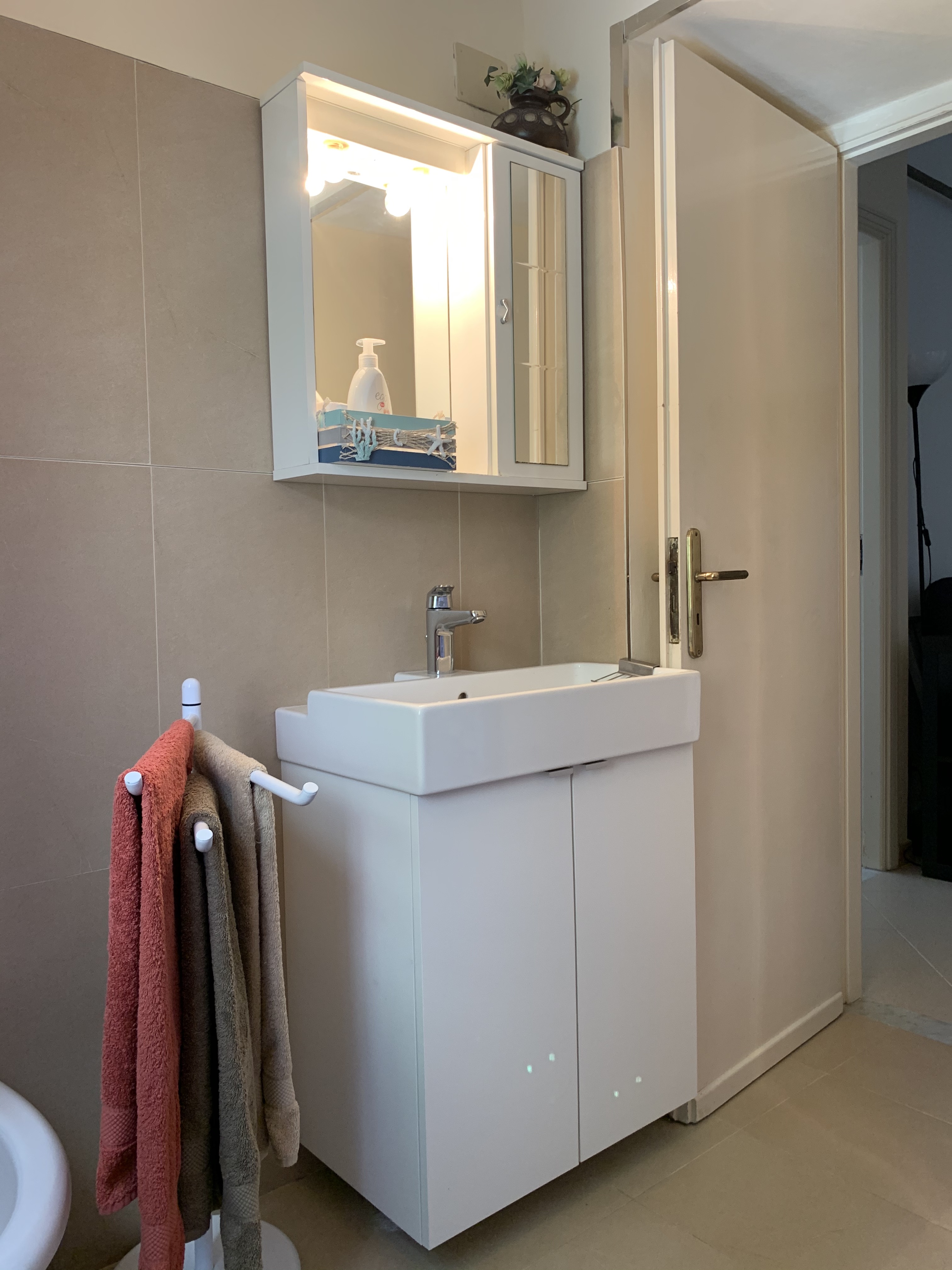 The air conditioner is located in this area. Every room, with the exception of the bathroom, also has a ceiling fan, this to meet the demands of those who do not tolerate air conditioners.